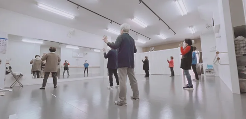 普段動かさない筋や筋肉をゆっくり伸ばし歌謡曲に合わせて